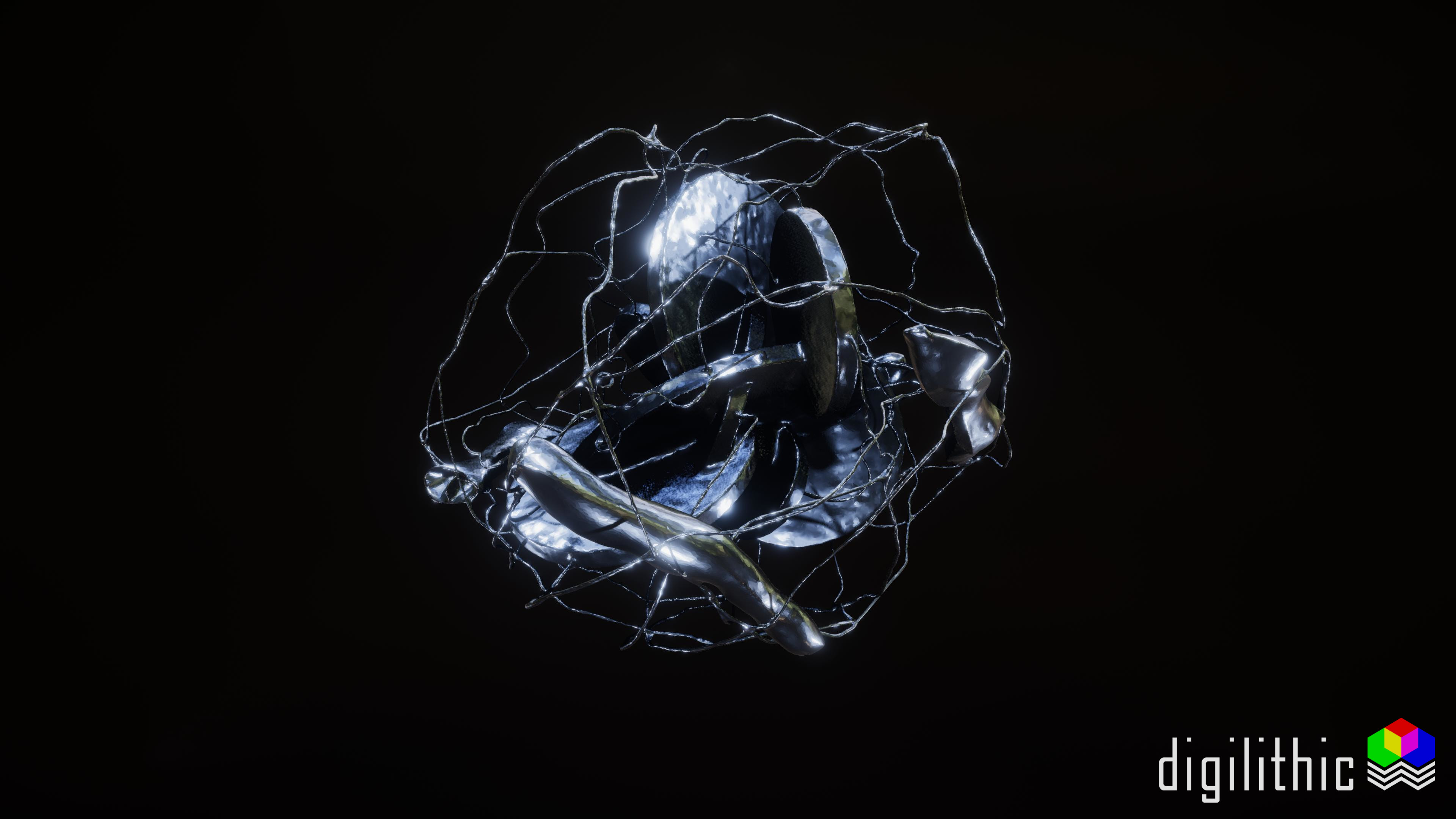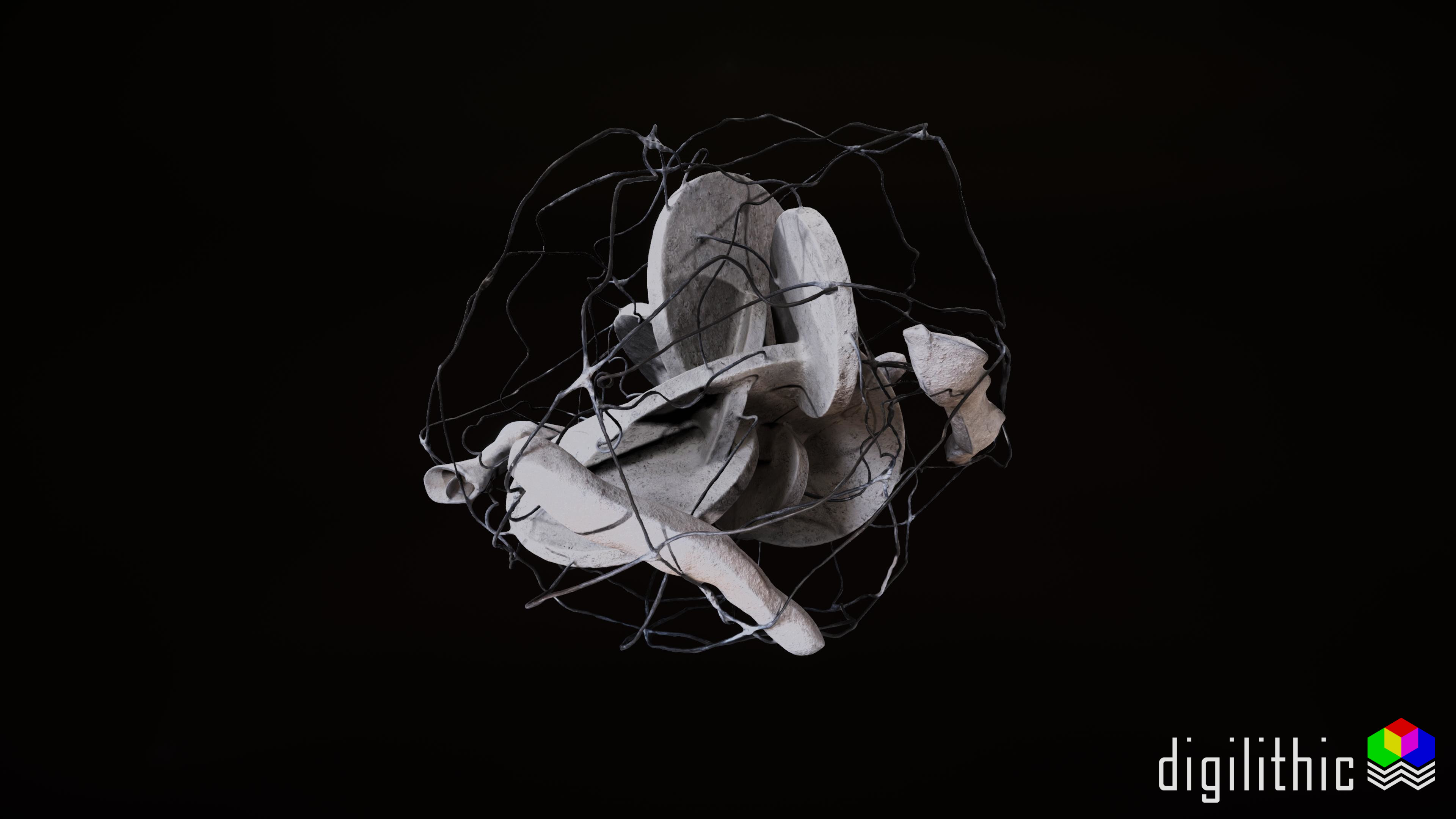 The massive construct wants to be light and seen from all angles, however for the scanning process it had to stand still to be able to capture all sides of the wires and forms. Still, in the end some of the wires had to be complemented by remodeling them. Watch this and further art of Loys Egg athis webpage: Loys Egg.